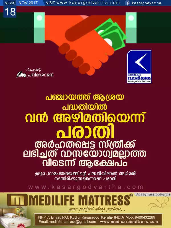 Keywords: Kasaragod, Kerala, news, Uduma, Woman, Corruption Uduma Panchayat Ashraya Project