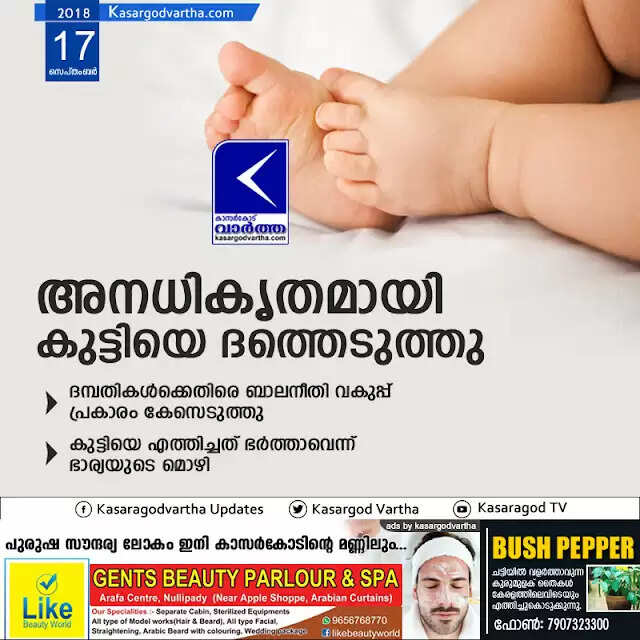 Keywords:  Kerala, news, Uduma, Kasaragod, husband, House-wife, Children, Couples adopted baby illegally; Police case registered