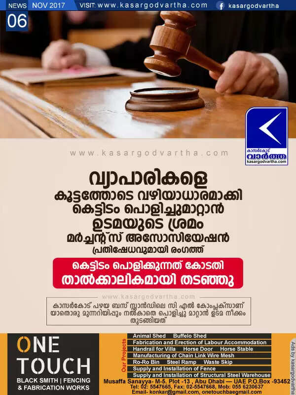 Keywords : Kasaragod, News, Merchant, Building, Merchant-association, Protest, Court, News, Court injunction order against demolition of building.