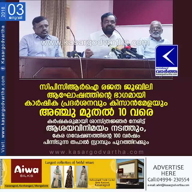 Keywords:  Kasaragod, Kerala, news, CPCRI, Celebration, CPCRI Silver jubilee starts on Jan 5th