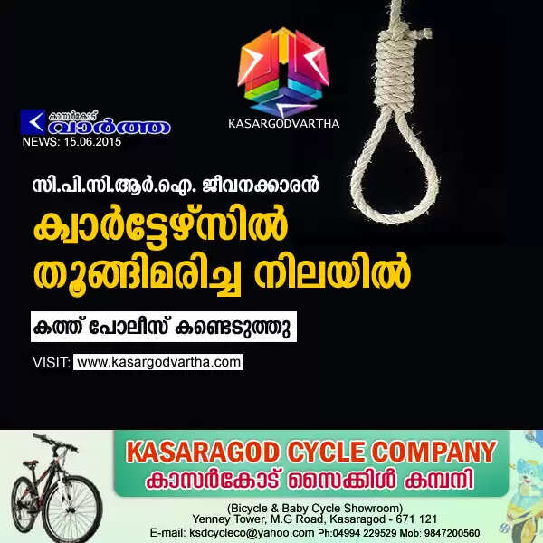 സി.പി.സി.ആര്‍.ഐ. ജീവനക്കാരന്‍ ക്വാര്‍ട്ടേഴ്‌സില്‍ തൂങ്ങിമരിച്ച നിലയില്‍; കത്ത് പോലീസ് കണ്ടെടുത്തു