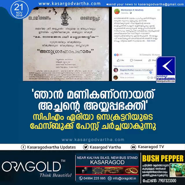 Keywords: CPM area Secretary's FB post about Sabarimala issue goes Viral, Kanhangad, Kasaragod, News, CPM, Social-Media, Facebook Post.