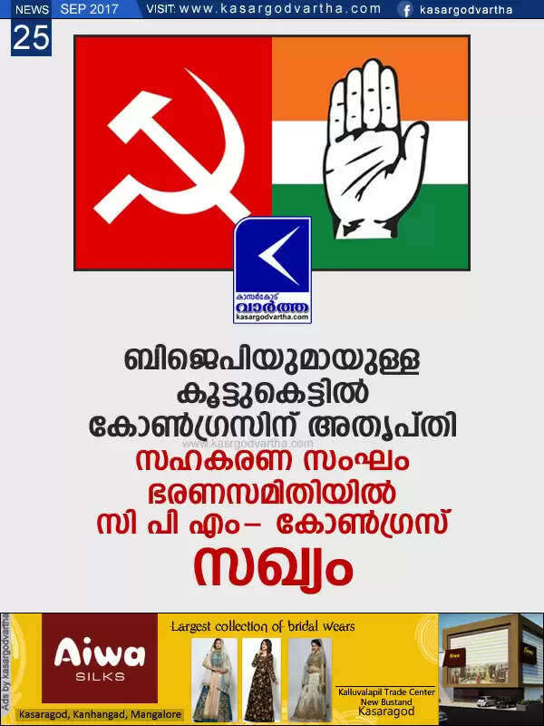 ബിജെപിയുമായുള്ള കൂട്ടുകെട്ടില് കോണ്ഗ്രസിന് അതൃപ്തി; സഹകരണ സംഘം ഭരണസമിതിയില് സി പി എം- കോണ്ഗ്രസ് സഖ്യം