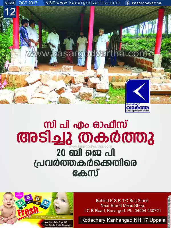 സി പി എം ഓഫീസ് അടിച്ചുതകര്ത്തു; 20 ബി ജെ പി പ്രവര്ത്തകര്ക്കെതിരെ കേസ്