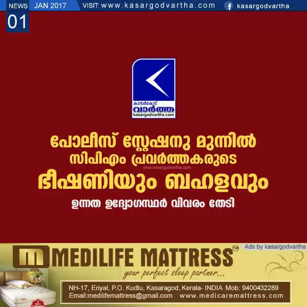 Keywords: Kasaragod, Kerala, Pilicode, Threatening, CPM, police-station, CPM volunteers threaten police.