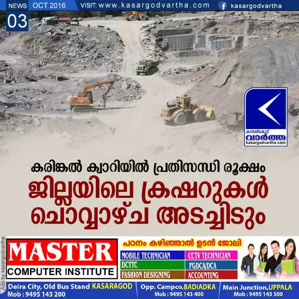 കരിങ്കല്‍ ക്വാറിയില്‍ പ്രതിസന്ധി രൂക്ഷം; ജില്ലയിലെ ക്രഷറുകള്‍ ചൊവ്വാഴ്ച അടച്ചിടും