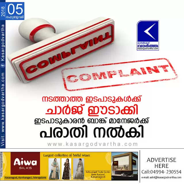 Keywords: Kasaragod, Kerala, News, Kanhangad, Complaint, Customer's complaint to Bank Manager.