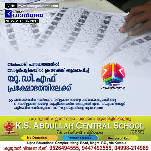 Keywords : Panchayath, UDF, Protest, Voters list, Elected, LDF, kasaragod, Kerala, Political party, Delampady.