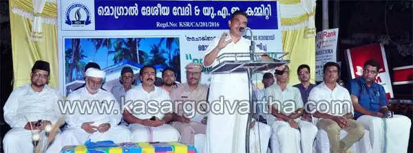 മൊഗ്രാലില്‍ ഇദംപ്രഥമമായി നടന്ന ഈ വേറിട്ട ജീവകാരുണ്യ പ്രവര്‍ത്തനത്തിന് നാട്ടില്‍ നിന്നും ഗള്‍ഫ് നാടുകളില്‍ നിന്നുമായി നിര്‍ലോഭമായ പിന്തുണയാണ് ലഭിച്ചത്. ദേശീയ വേദിയുടെ പ്രവര്‍ത്തന പാതയില്‍ പുതിയ അധ്യായം തുന്നിച്ചേര്‍ത്ത് കൊണ്ട് നടന്ന ചടങ്ങ് ജില്ലാ പഞ്ചായത്ത് പ്രസിഡന്റ് എ ജി സി ബഷീര്‍ ഉദ്ഘാടനം ചെയ്തു. പൈക്ക കാനക്കോട് ഖാസി സയ്യിദ് മുഹമ്മദ് മദനി തങ്ങള്‍ താക്കോല്‍ കൈമാറി. മൊഗ്രാല്‍ ദേശീയ വേദി പ്രസിഡന്റ് ടി കെ അന്‍വര്‍ അധ്യക്ഷത വഹിച്ചു. കുമ്പള അഡീഷണല്‍ എസ് ഐ ബാബു തോമസ് മുഖ്യാതിഥിയായിരുന്നു. ഭൂരേഖ എ ജി സി ബഷീര്‍ കൈമാറി. കാസര്‍കോട് പ്രസ് ക്ലബ്ബ് വൈസ് പ്രസിഡന്റ് ടി എ ഷാഫി, ജില്ലാ ഫുട്‌ബോള്‍ അസോസിയേഷന്‍ പ്രസിഡന്റ് പി സി ആസിഫ്, രവീന്ദ്രന്‍ പാടി, അഷ്‌റഫ് കര്‍ള, ടി എം ഷുഹൈബ്, സിദ്ദീഖലി മൊഗ്രാല്‍, മാഹിന്‍ മാസ്റ്റര്‍, സയ്യിദ് ഹാദി തങ്ങള്‍, ബഷീര്‍ അഹ് മദ്, സത്താര്‍ ആരിക്കാടി, എം എ അബ്ദുര്‍ റഹ് മാന്‍, സിദ്ദീഖ് റഹ് മാന്‍, പി എ ആസിഫ്, കുത്തിരിപ്പ് മുഹമ്മദ്, ഹമീദ് കാവില്‍, നാസിര്‍ മൊഗ്രാല്‍, സി എച്ച് ഖാദര്‍, മുഹമ്മദലി കൊപ്പളം, ഹമീദ് ബദിയടുക്ക, മുഹമ്മദ് സലീം പ്രസംഗിച്ചു. ജനറല്‍ സെക്രട്ടറി കെ പി മുഹമ്മദ് സ്വാഗതവും, സെക്രട്ടറി മുഹമ്മദ്കുഞ്ഞി മാസ്റ്റര്‍ നന്ദിയും പറഞ്ഞു.