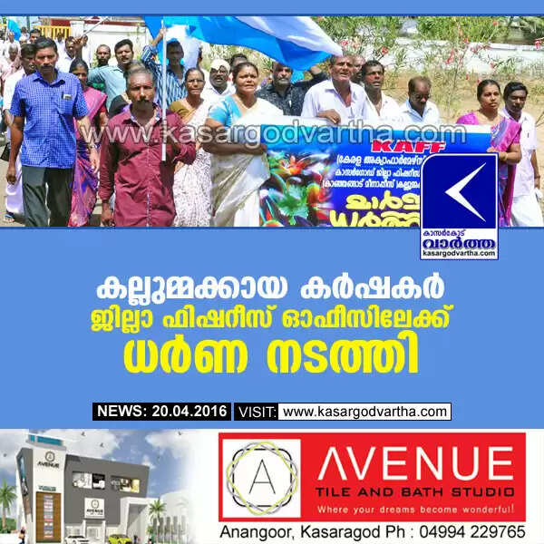 കാഞ്ഞങ്ങാട്: (www.kasargodvartha.com 20.04.2016) കേരള അക്വാഫാര്മേഴ്സ് ഫെഡറേഷന്റെ നേതൃത്വത്തില് ജില്ലയിലെ കല്ലുമ്മക്കായ കര്ഷകര് കാഞ്ഞങ്ങാട് മീനാപ്പീസിലെ ജില്ലാ ഫിഷറീസ് ഓഫീസിലേക്ക് ധര്ണ നടത്തി.