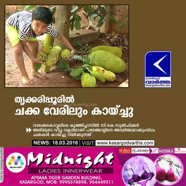 തൃക്കരിപ്പൂരില് ചക്ക വേരിലും കായ്ച്ചു
