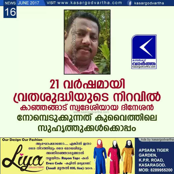 Keywords: Kasaragod, Kerala, Kanhangad, news, kuwait, Dineshan along with Kuwaiti friends had been taking fasting since 21 years
