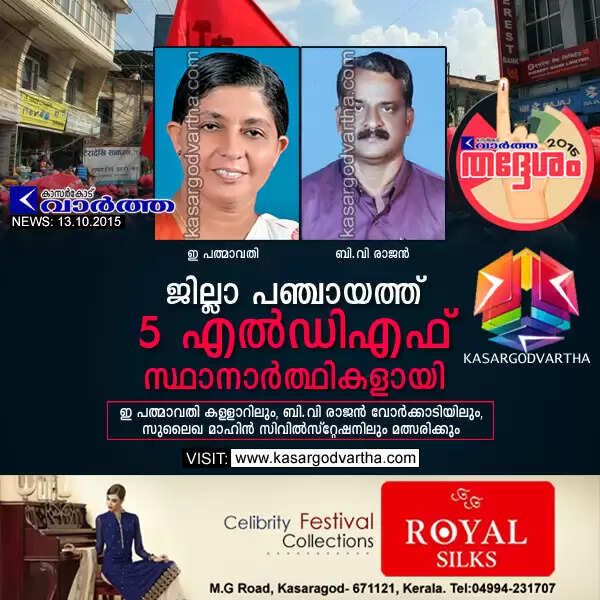 ജില്ലാ പഞ്ചായത്ത്: 5 എല്ഡിഎഫ് സ്ഥാനാര്ത്ഥികളായി