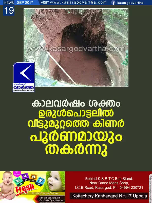 Keywords: Kasargo, News, Rain, Well, House, Natural calameties, Distroyed, Down for; Natural calamities in Kasaragod.