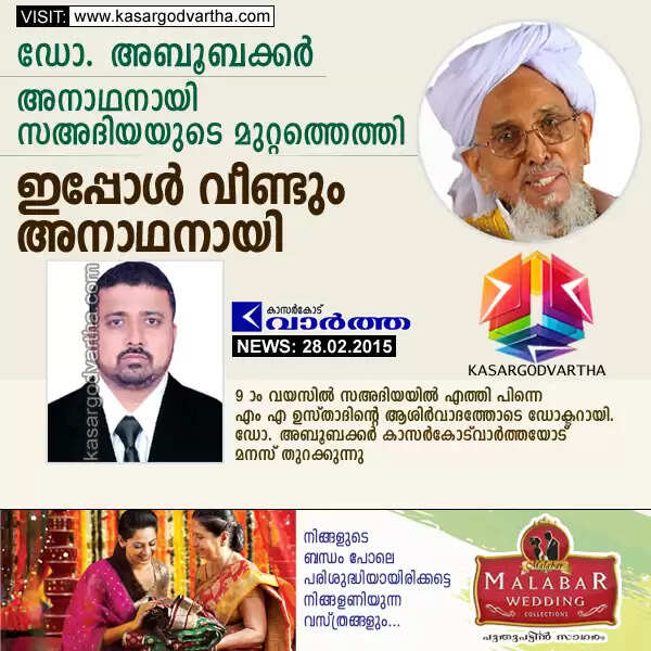 ഡോ. അബൂബക്കര്, അനാഥനായി സഅദിയയുടെ മുറ്റത്തെത്തി, ഇപ്പോള് വീണ്ടും അനാഥനായി