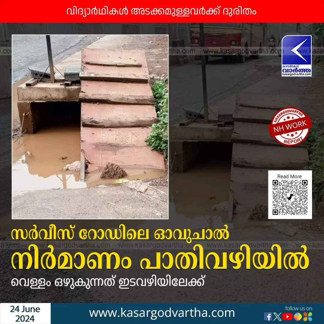 NH Work | സർവീസ് റോഡിലെ ഓവുചാൽ നിർമാണം പാതിവഴിയിൽ; വെള്ളം ഒഴുകുന്നത് ഇടവഴിയിലേക്ക്; വിദ്യാർഥികൾ അടക്കമുള്ളവർക്ക് ദുരിതം