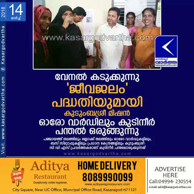 Keywords: Mangalpady, Kasaragod, Kerala, News, Drinking water, Kudumbasree, Inauguration,Drinking water project by Kudumbasree