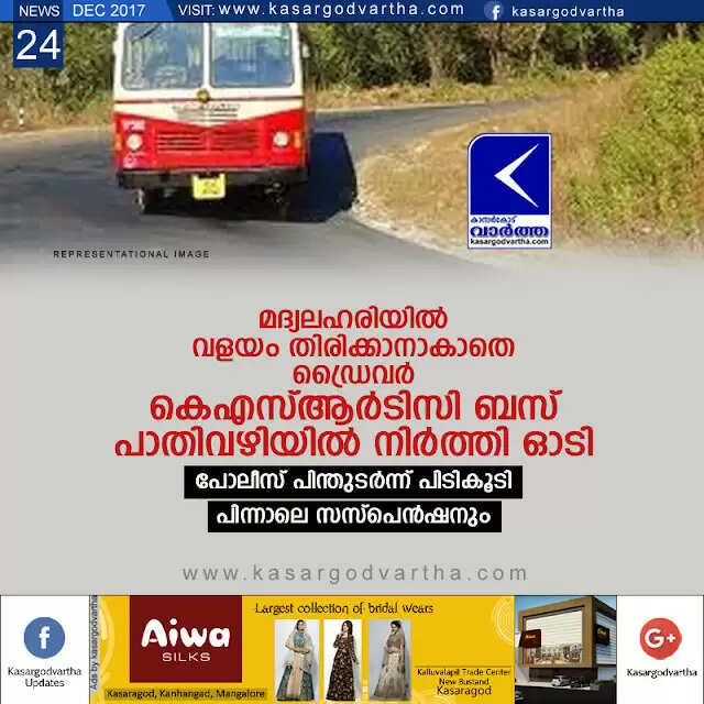 Keywords: Kasaragod, Kanhangad, Kerala, News, KSRTC-bus, Police, Suspension, Driver held for driving after drunk.