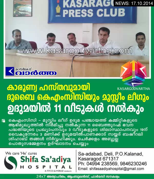 കാരുണ്യ ഹസ്തവുമായി ദുബൈ കെ.എം.സി.സി.യും മുസ്ലീം ലീഗും; ഉദുമയില് 11 വീടുകള് നല്കും