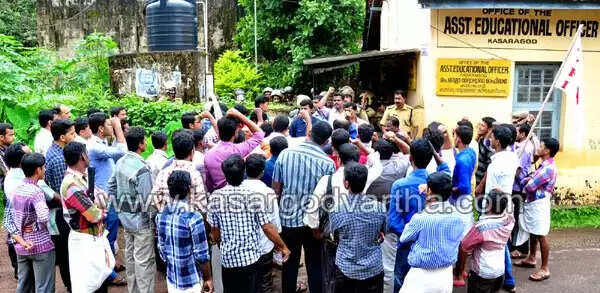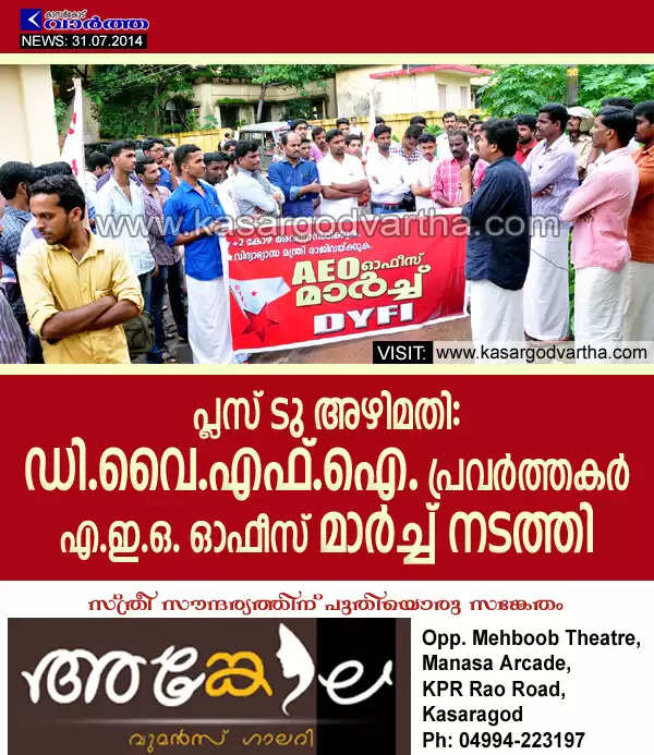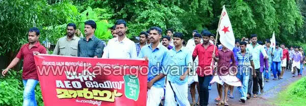 Keywords: DYFI, Protest, March, Kasaragod, Plus-two, Kerala, Education Minister, AEO, corruption, DYFI march against AEO office.