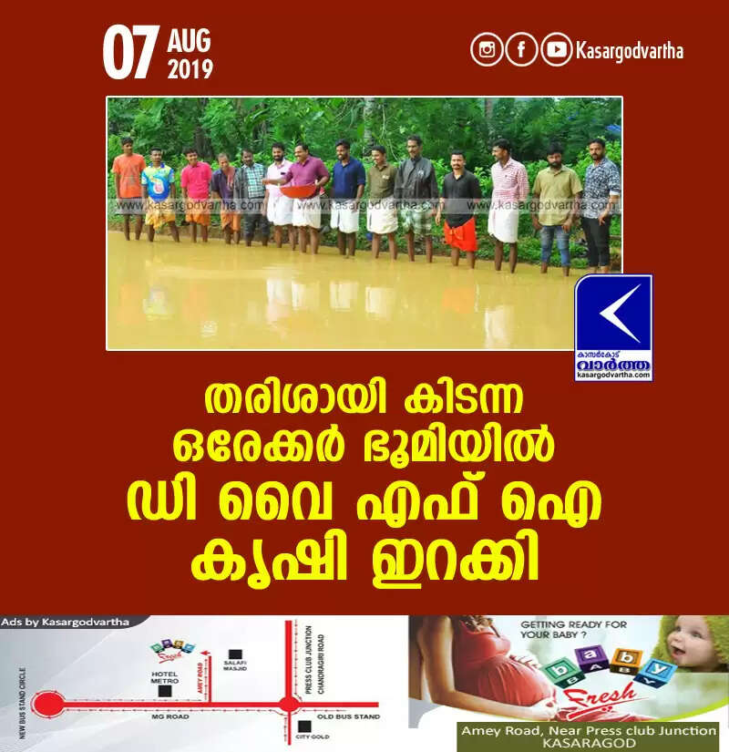 തരിശായി കിടന്ന ഒരേക്കര് ഭൂമിയില് ഡി വൈ എഫ് ഐ കൃഷി ഇറക്കി