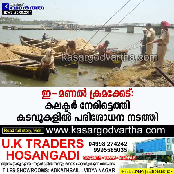 Keywords: Collector, Corruption, Kasaragod, Kerala, Sand, Police, SP, Report, Vigilance, E-manal, Msand, E-sands: Vigilance finds scam.