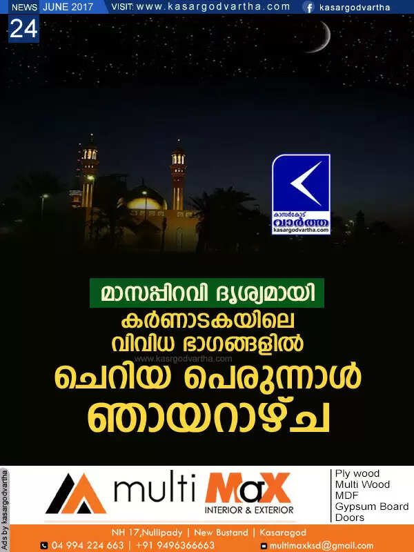 Keywords: Kasaragod, Karnataka, news, Eid, Sunday, Qazi, Thwaqa Ahmed Musliyar, Costal Karnataka
