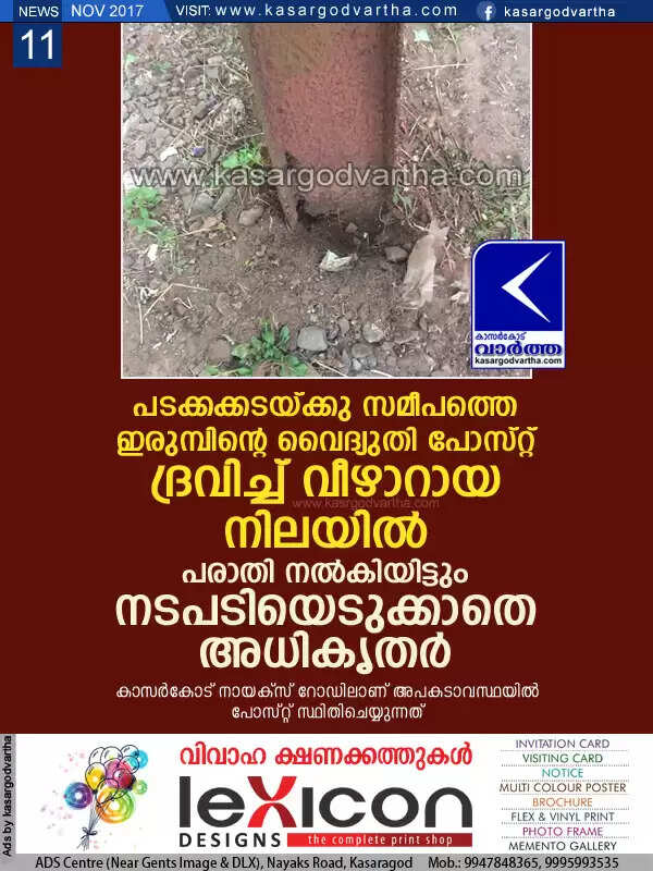 Keywords: Kasaragod, Kerala, news, Electric post, complaint, Electricity, Electric post in Bad condition