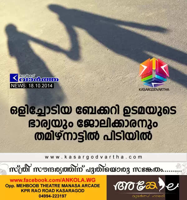നീലേശ്വരം: (www.kasargodvartha.com 18.10.2014) നീലേശ്വരത്ത് നിന്ന് കാണാതായ ബേക്കറി ഉടമയുടെ ഭാര്യയേയും അവിടെ ജോലിക്കാരനായിരുന്ന 18 കാരനേയും തമിഴ്നാട്ടിലെ നാഗര്കോവിലിലെ ലോഡ്ജില്നിന്ന് പോലീസ് പിടികൂടി.