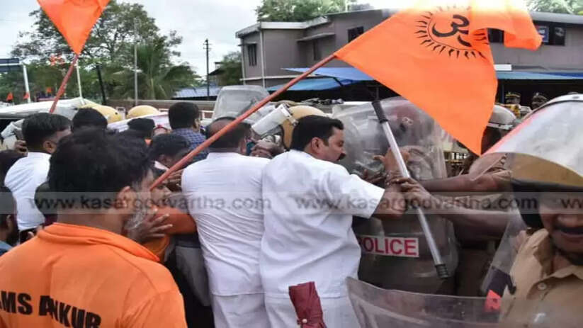 Clash | ഒളിച്ചോട്ടം: ലൗ ജിഹാദ് ആരോപിച്ച് ഹിന്ദു ഐക്യവേദി ബദിയടുക്ക പൊലീസ് സ്റ്റേഷനിലേക്ക് നടത്തിയ മാര്ചില് ഉന്തും തള്ളും