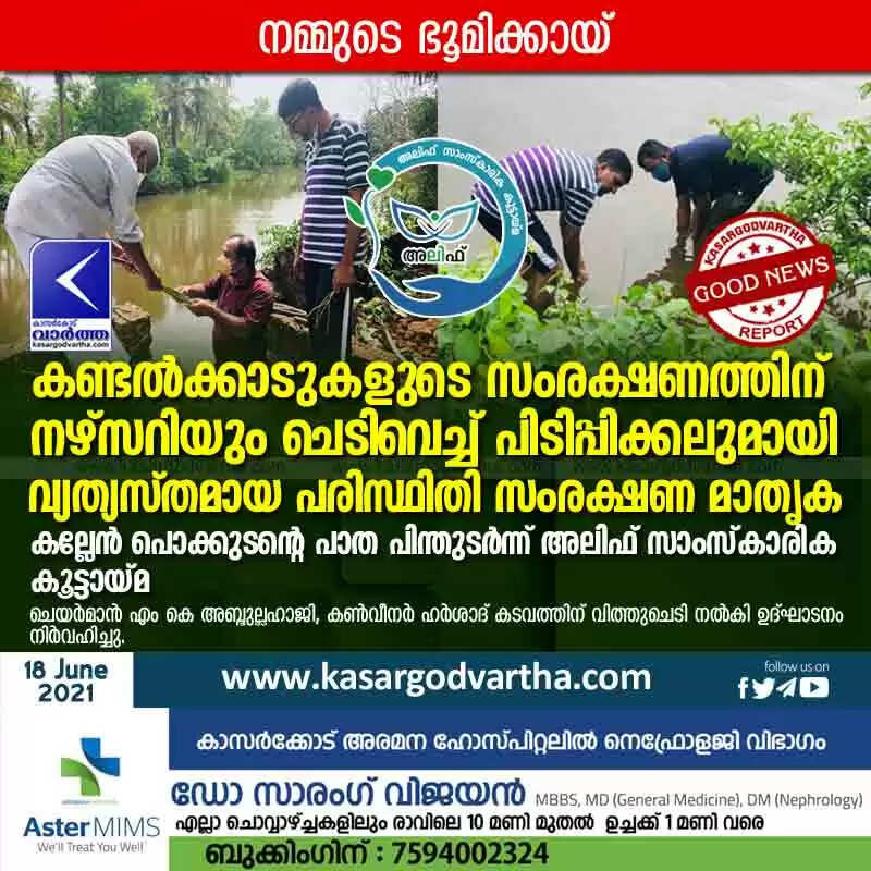 കണ്ടൽക്കാടുകളുടെ സംരക്ഷണത്തിന് നഴ്‌സറിയും ചെടിവെച്ച് പിടിപ്പിക്കലുമായി വ്യത്യസ്‍തമായ പരിസ്ഥിതി സംരക്ഷണ മാതൃക; കല്ലേൻ പൊക്കുടന്റെ പാത പിന്തുടർന്ന് അലിഫ് സാംസ്കാരിക കൂട്ടായ്മ