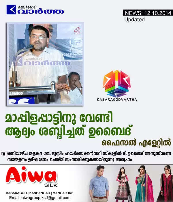 Keywords : Kasaragod, T-Ubaid, Remembrance, Programme, Thalangara, Faizal Eletil.