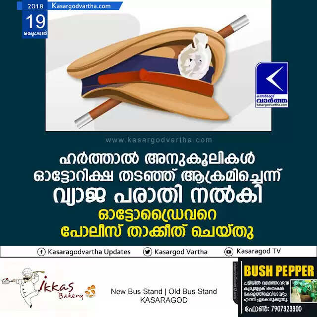 Keywords:  Kumbala, Police, Harthal, Auto-rickshaw, Complaint, Kasaragod, News, Fake Complaint, Fake complaint; Auto driver warned by police