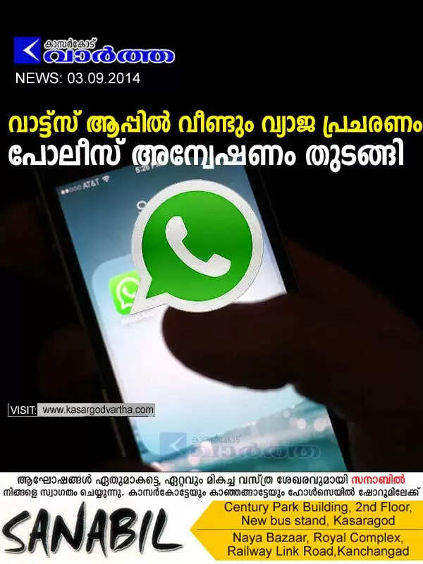 വാട്ട്സ് ആപ്പില് വീണ്ടും വ്യാജ പ്രചരണം: പോലീസ് അന്വേഷണം തുടങ്ങി