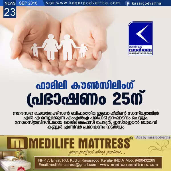 ഫാമിലി കൗണ്സിലിംഗ് പ്രഭാഷണം 25ന്