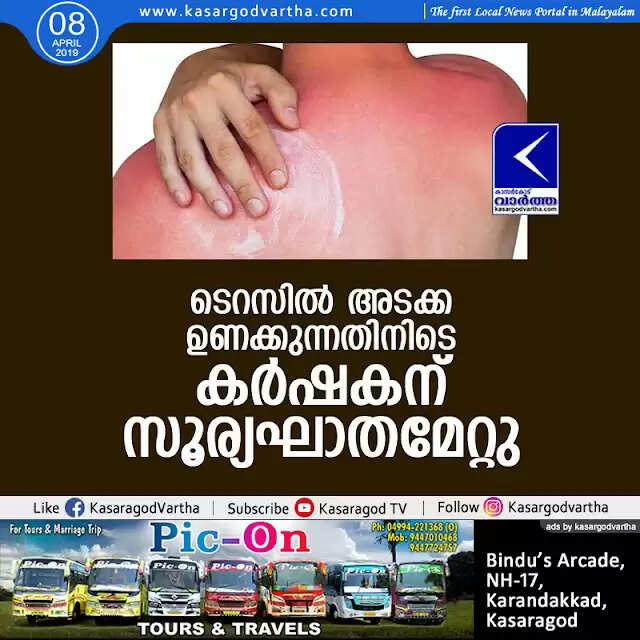 Keywords: Farmer injured after Sunburn, Karinthalam, Kasaragod, Injured, News, Farmer.