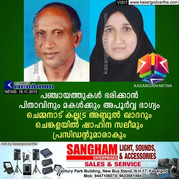 പഞ്ചായത്ത് പ്രസിഡന്റ് പദവി പിതാവും മകളും ഒരേസമയം അലങ്കരിക്കുന്നത് കാസര്കോട് ജില്ലയില് ഇത് ആദ്യമായിരിക്കും.