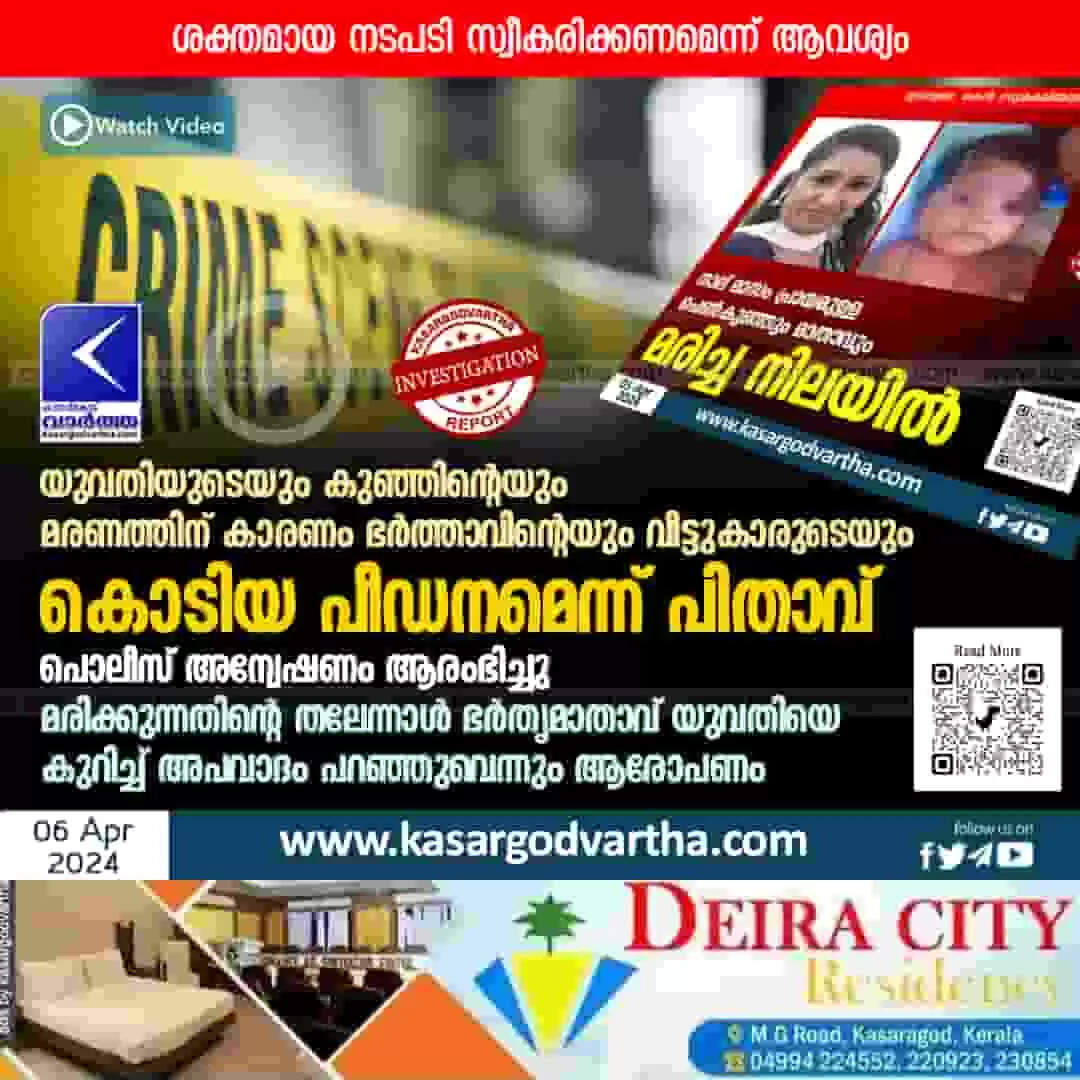 Investigation | യുവതിയുടെയും കുഞ്ഞിന്റെയും മരണത്തിന് കാരണം ഭര്ത്താവിന്റെയും വീട്ടുകാരുടെയും കൊടിയ പീഡനമെന്ന് പിതാവ്; പൊലീസ് അന്വേഷണം ആരംഭിച്ചു; മൃതദേഹങ്ങൾ സംസ്ക്കരിച്ചു