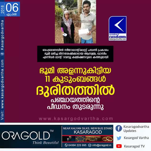 Keywords: Kasaragod, Kerala, news, Panchayath, Kumbala, Land, Fault of Panchayath; 11 families in trouble.