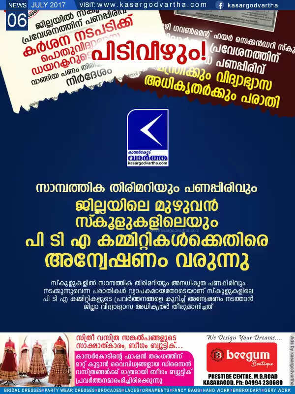 Keywords: Kasaragod, School, PTA, Investigation, Complaint, Parents, News, Kerala, Action, Education department, Students, Cash, Financial cheat and funding: inquire for all school PTA committee.