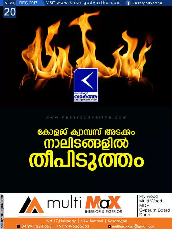 Keywords: Kasaragod, Kerala, News, Fire, Fire force, College campus,