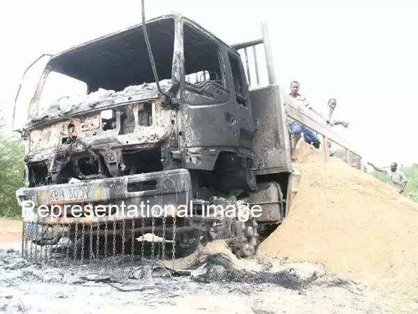 റോഡരികില് നിര്ത്തിയിട്ട മണല്ലോറിക്ക് തീപിടിച്ചു; ഡ്രൈവര് അറസ്റ്റില്
