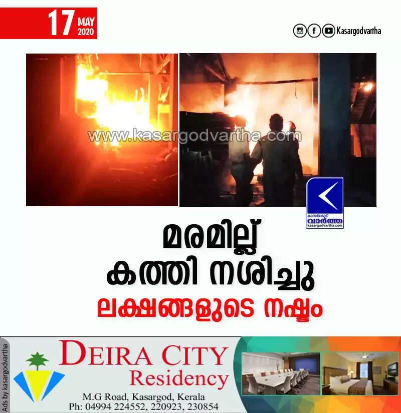 Keywords:U duma, news, Kerala, kasaragod, fire, fire force, Wood, Mill, Fire destroys wood mill