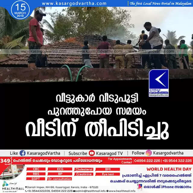വീട്ടുകാര് വീടുപൂട്ടി പുറത്തുപോയ സമയം വീടിന് തീപിടിച്ചു