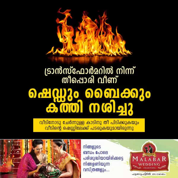 ട്രാന്സ്ഫോര്മറില് നിന്ന് തീപ്പൊരി വീണ് ഷെഡ്ഡും ബൈക്കും കത്തി നശിച്ചു