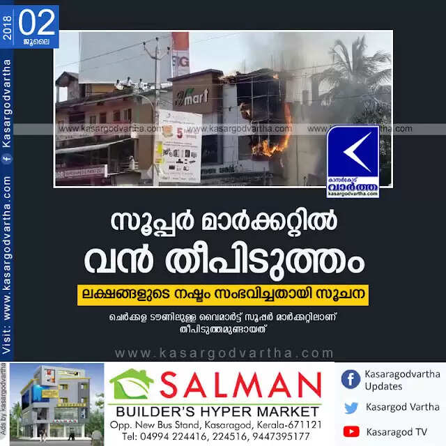 Keywords: Kasaragod, Kerala, news, Cherkala, fire, Fire in Super market at Cherkala