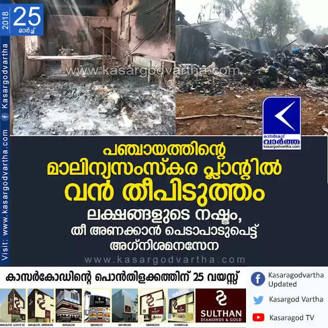പഞ്ചായത്തിന്റെ മാലിന്യ സംസ്കരണ പ്ലാന്റില് വന് തീപിടുത്തം; ലക്ഷങ്ങളുടെ നഷ്ടം, തീ അണക്കാന് പെടാപാടുപെട്ട് അഗ്നിശമനസേന