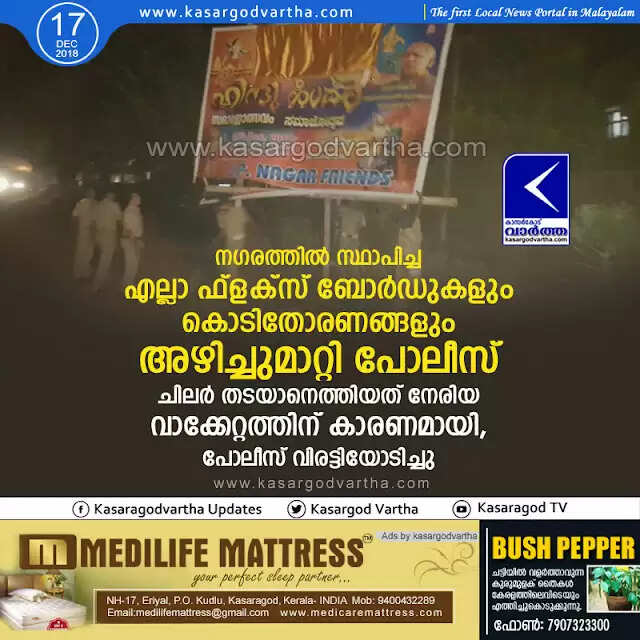 Keywords: Kasaragod, Kerala, news, Police, Flex board, Flex boards removed by Police