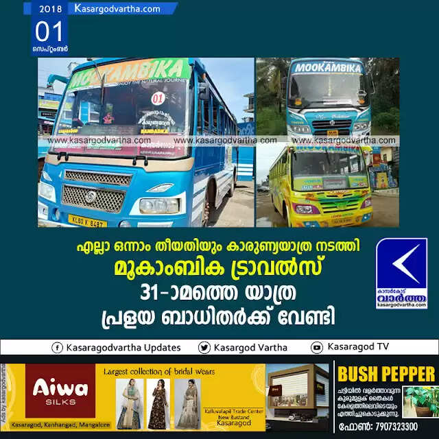 എല്ലാ ഒന്നാം തീയതിയും കാരുണ്യയാത്ര നടത്തി മൂകാംബിക ട്രാവല്സ്. 31- ാമത്തെ യാത്ര പ്രളയ ബാധിതര്ക്ക് വേണ്ടി