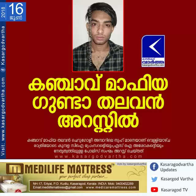 Keywords: News, Uppala, Kasaragod, Kerala, Accuse, Arrest, Police, Ganja mafia Goonda Leader arrested